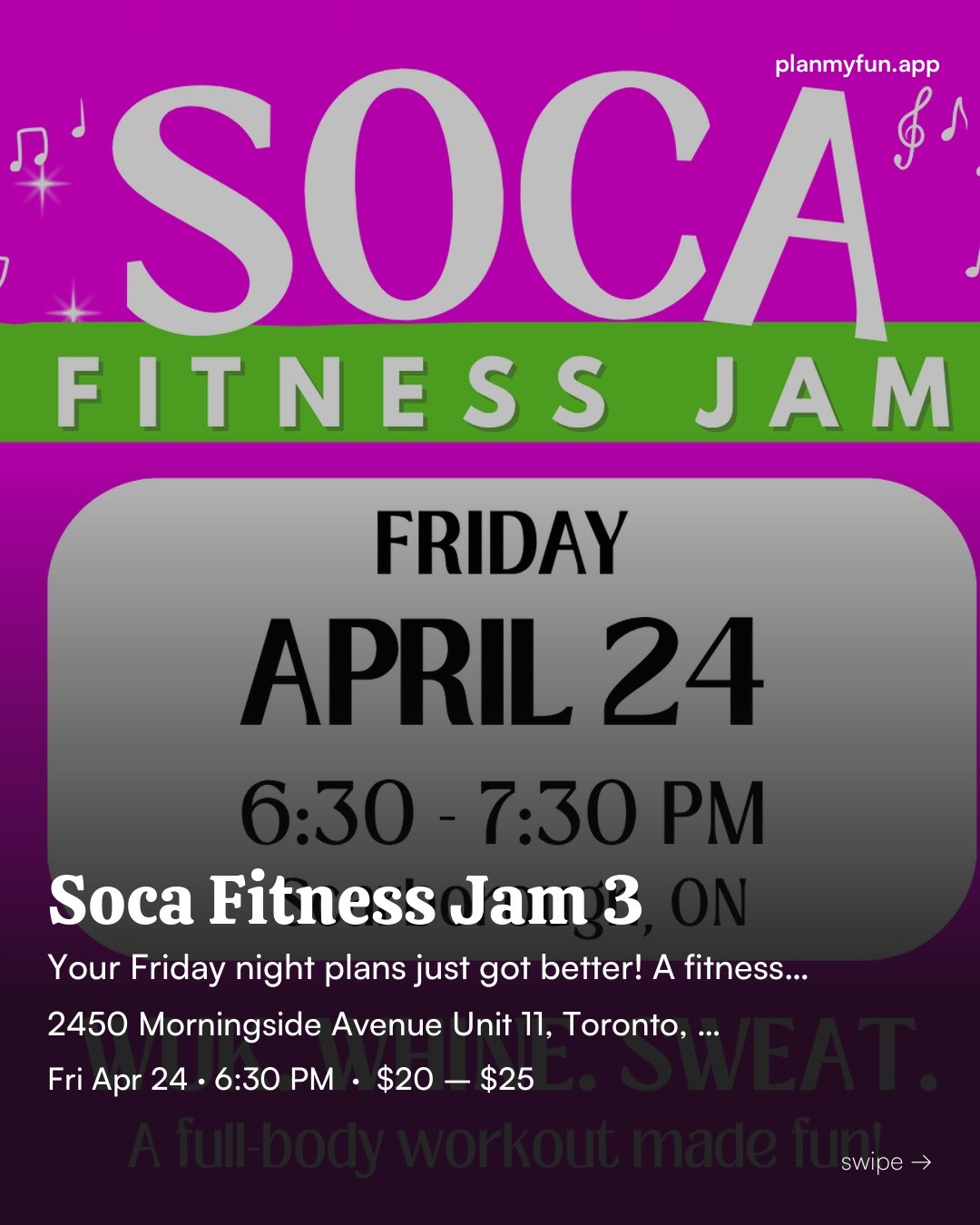 Your Friday night plans just got better with this soca-focused fitness experience designed for women to dance freely and feel empowered. This is cardio that doesn't feel like work.